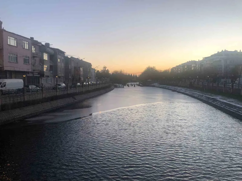 Eskişehir'de dondurucu soğukların etkisiyle Porsuk Çayı'nın yüzeyi buzla kaplandı. Sabahın ilk ışıklarıyla birlikte ortaya çıkan "yarısı buz, yarısı su" görüntüsü, kenti adeta bir kartpostala dönüştürdü.