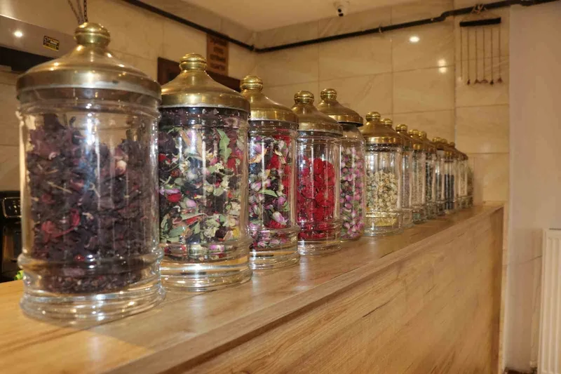 Sivas'ta bir kafede 50 farklı bitki çayı, müşteriler ve işletmecinin ortak kararıyla verilen ilginç isimleri ve renkleriyle yoğun ilgi görüyor.
