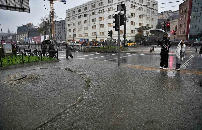 Megakent İstanbul'da bir yandan fırtına diğer yandan şiddetli yağmur etkili oluyor. Bu sırada dışarıda olan vatandaşlar ise zor anlar yaşıyor. Şiddetli yağmur nedeniyle yollar göle dönerken, Eminönü'nü ise su bastı. Sürücülerin ise güçlükle ilerlediği görüldü. Göle dönen yolda bir rögar kapağının ise suyun şiddetiyle yerinden çıktığı görüldü. Yolun karşısına geçmeye çalışan vatandaşlar ise ıslanmamak için büyük çaba sarf etti.