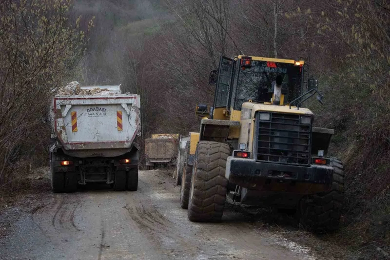 DÜZCE (İHA) – Düzce İl Özel İdaresi Yol ve Ulaşım Hizmetleri Müdürlüğü ekipleri, il genelinde daha önce meydana gelen heyelanlarda olduğu gibi Erdemli Köyü'nde yaşanan heyelana da kısa sürede müdahale etti. Yol güvenliğinin sağlanması ve ulaşımda aksama yaşanmaması amacıyla başlatılan çalışmalar aralıksız devam ediyor.