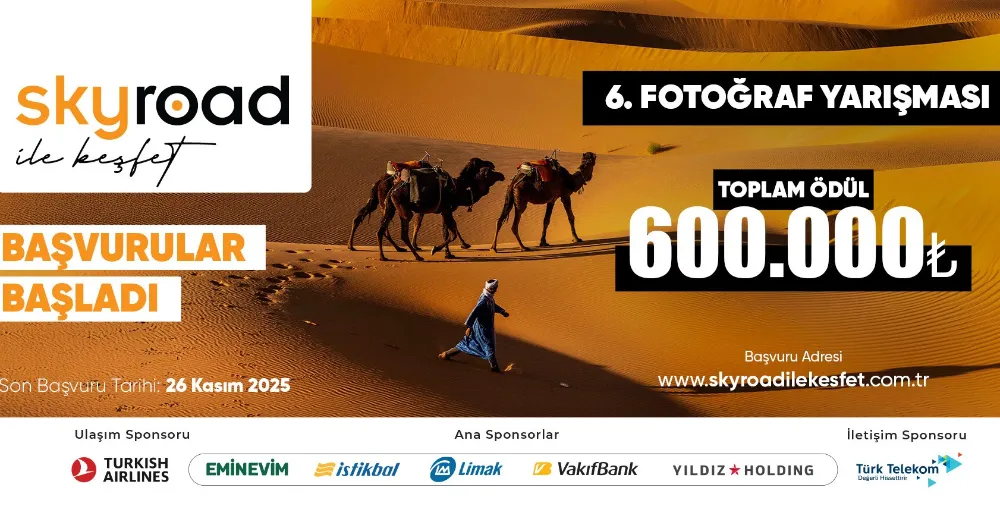 "Dünyanın Seyahat Rotalarını Keşfet" temasıyla bu yıl altıncı kez düzenlenen Skyroad ile Keşfet Fotoğraf Yarışması, fotoğraf tutkunlarını yeniden bir araya getiriyor. Profesyonel Seyahat Fotoğrafları, Drone Fotoğrafları, Cep Telefonu Fotoğrafları ve Mutlu Et Mutlu Ol Özel Ödülü olmak üzere dört kategoride gerçekleştirilen yarışma, her yaştan katılımcıya hem keşif tutkusunu ortaya koyma hem de ödül kazanma fırsatı sunuyor.