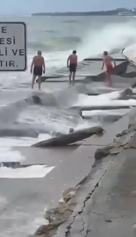 Kuvvetli lodos Caddebostan Sahili’i vurdu, denize giren 3 kişi hastanelik oldu