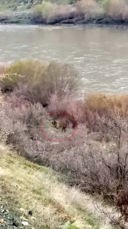 Elazığ'ın Palu ilçesine bağlı Beyhan Kasabası yakınlarında Murat Nehri kıyısına balık tutmaya giden bir balıkçı, su kenarında ayı ve yavrusuyla karşılaştı. Doğa ile baş başa kaldığı anlarda büyük şaşkınlık yaşayan balıkçı, ayı ve yavrusunu cep telefonu kamerasıyla kaydetti.