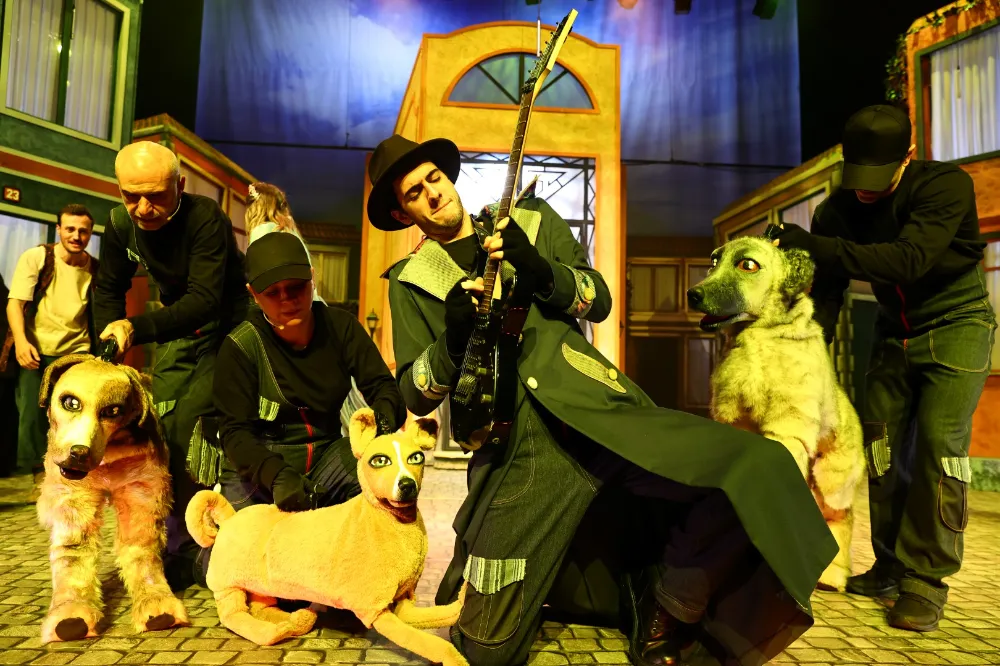 Sahnelemede kullanılan özgün kuklalar, yaratıcı yorum ve gösterinin güçlü tiyatro dili izleyicilerden uzun süre alkış aldı.