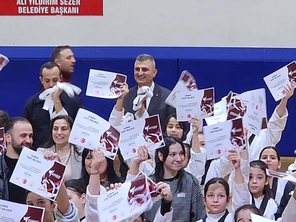 Gölcük Belediyesi, geleceğin yıldız sporcu adaylarını bünyesinde yetiştirmeye devam ediyor. Bu kapsamda Gölcük Belediyespor bünyesinde bulunan 470 Taekwondo sporcusu, kuşak sınavını başarı ile tamamlayarak bir üst kemere geçiş yaptılar. 17 Ağustos Spor Salonunda düzenlenen Taekwondo Kuşak törende sporcular tarafından yapılan gösteriler, salonu dolduran ailelerinden alkış aldı. Törene katılan Gölcük Belediye Başkanı Ali Yıldırım Sezer, gösterilerin ardından kuşak atlayan sporculara yeni kemerlerini takdim etti. Başkan Yardımcısı Kürşat Çakıroğlu’nun da katıldığı tören ile sporcular; yeni kuşaklarını alarak bir üst kemere geçiş yaptılar.
