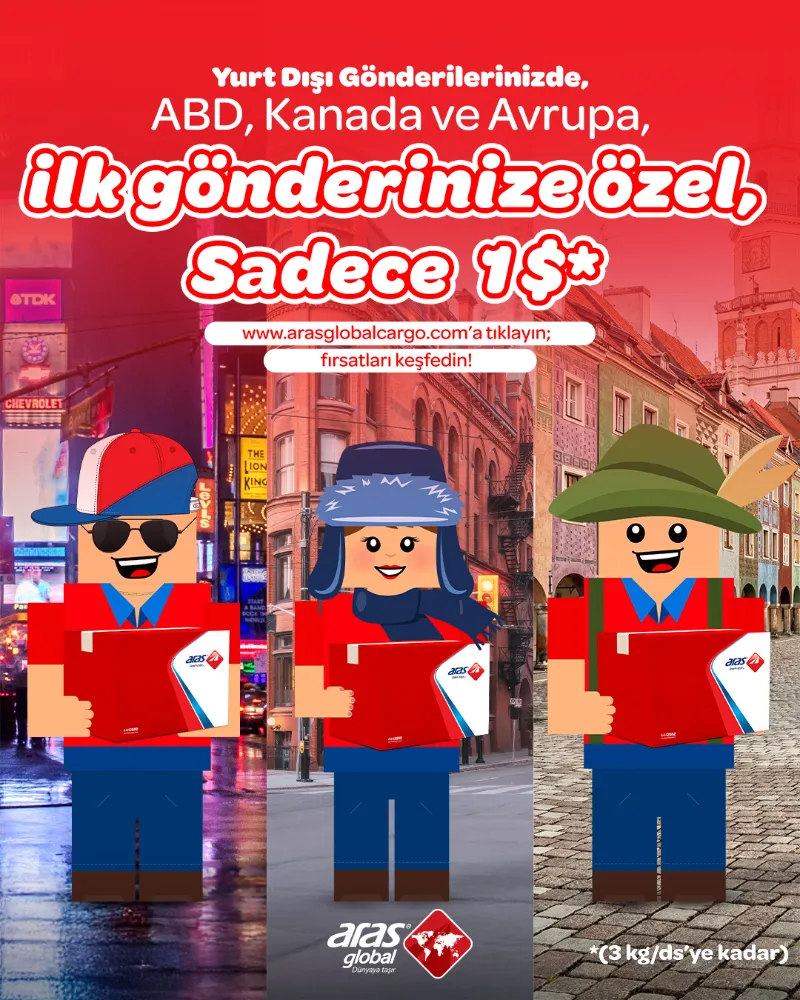 Uluslararası kargo gönderilerinde Aras Global iştirakiyle yenilikçi çözümler sunan Aras Kargo hem KOBİ’lerin global e-pazaryerine entegre olmasını kolaylaştırıyor hem de bireysel gönderilerde avantaj sağlıyor. Aras Global’ın avantajlarına dikkat çekmek amacıyla Amerika Birleşik Devletleri, Kanada ve Avrupa ülkelerine ilk kez gönderim yapacaklara özel bir kampanya hayata geçti. Kampanya kapsamında Amerika Birleşik Devletleri, Kanada ve Avrupa ülkelerine gerçekleştirilecek 3Kg/DS’e kadar ilk gönderilerden 1 Amerika Birleşik Devletleri doları alınacak.