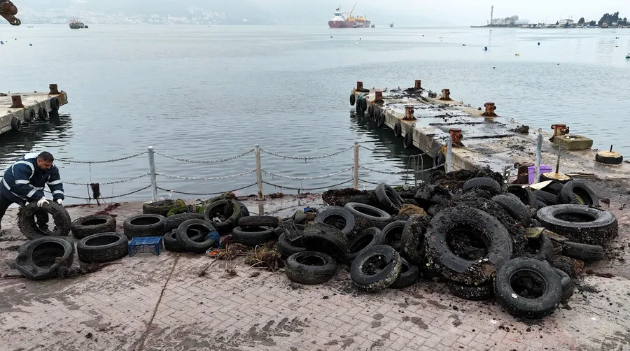 DENİZ DİBİNDEN 50 ARAÇ LASTİĞİ ÇIKARILDI
