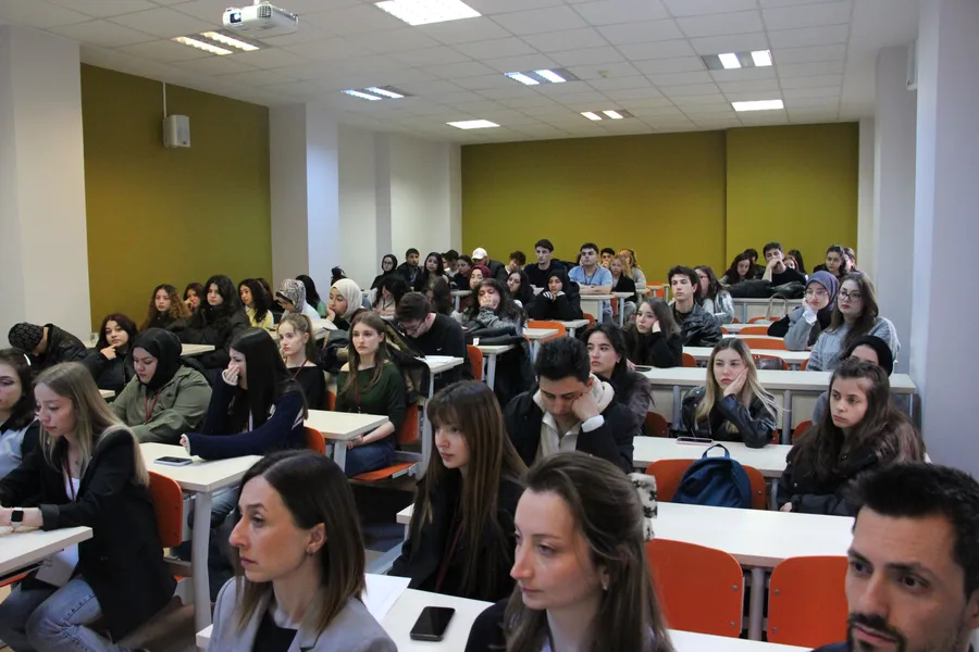 Etkinlikte İletişim Fakültesi Dekanı Prof. Dr. İdil Sayımer ve Sıfır Atık Şube Müdürü Hüseyin Kılıç’ın katılımıyla “Sıfır Atık Farkındalığı” söyleşisi gerçekleştirildi. Söyleşide sürdürülebilir yaşam alışkanlıklarının önemi vurgulanırken, gençlerin bu süreçte üstleneceği rolün altı çizildi. Kocaeli Büyükşehir Belediyesi’nin öncülüğünde yürütülen bu çalışmalar, sıfır atık bilincini yalnızca bir çevre politikası olmaktan çıkarıp, toplumsal bir yaşam kültürüne dönüştürmeyi hedefliyor.