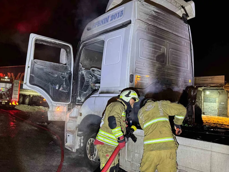 Araçtan alevlerin yükseldiğini gören Tır sürücüsü, aracı yol kenarına çekerek durumu itfaiyeye bildirdi. 112 Acil Çağrı Merkezine yapılan ihbar üzerine bölgeye sevk edilen itfaiye ekipleri tarafından söndürülen yangından sonra TIR’da büyük çapta maddi hasar oluştu.