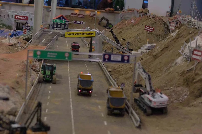 Mini bir şehir şantiyesi olarak tasarlanan alanda Düzce’nin Prusias ad Hypium Antik Kenti, Korugöl Tabiat Parkı, Atatürk Bulvarı ve Asar Kemer Park gibi simge noktalarına da yer verildi. Yediden yetmişe her yaş grubundan insanın keyifli vakit geçirdiği kafede oyuncak vinç, kamyon, dozer, traktör ve tır gibi iş makineleri bulunuyor. Uzaktan kumandayla kontrol edilen RC araçlar ile yük taşınabiliyor, kazı yapılabiliyor, tır ve kamyon kasalarına vinçlerle yük bırakılabiliyor.