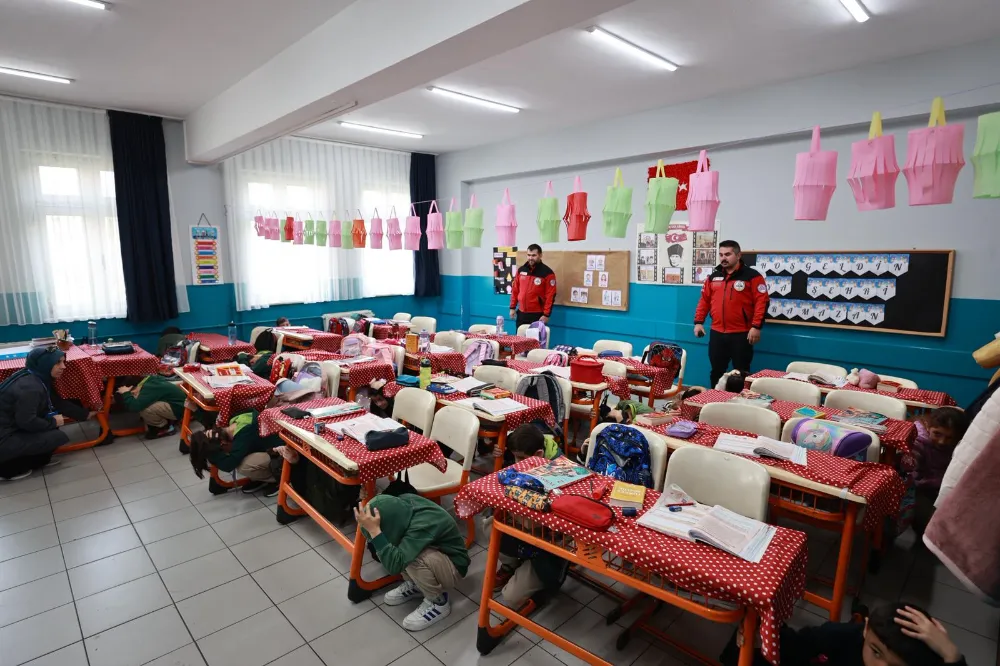 Gerçekçi bir senaryo üzerinden gerçekleştirilen tatbikatta, deprem anında yapılması gereken “çök–kapan–tutun” hareketi öğrencilere uygulamalı olarak anlatıldı. Ardından okulun tahliye süreci canlandırılarak öğrencilerin güvenli şekilde toplanma alanına yönlendirilmesi sağlandı.