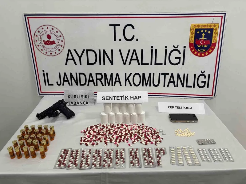 Aydın İl Jandarma Komutanlığı koordinesinde İncirliova ilçesinde uyuşturucu madde ticareti ve kullanımının önlenmesine yönelik çalışma gerçekleştirildi. Edinilen bilgiye göre ekipler, Hürriyet Mahallesi’nde belirlenen bir adrese baskın düzenledi. Narkotik Suçlarla Mücadele Köpek Unsuru’nun da desteğiyle adrese yönelik yapılan operasyon kapsamındaki aramalarda 702 adet sentetik hap, 1 adet tabanca, 1 adet cep telefonu ele geçirildi. Olayla ilgili olarak F.B. (34) isimli şüpheli şahıs yakalanarak gözaltına alındı. Gerekli işlmelerinin ardından adliyeye sevk edilen şüpheli, tutuklanarak cezaevine gönderildi.
