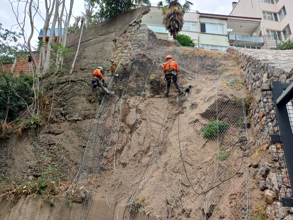 Toprak kayması ve kaya düşmesi riski taşıyan 100 metrekarelik alan için yapılan çalışmada, çelik güçlendirme halatları ile desteklenen çelik ağ sistemi monte edildi. Montaj işlemi, ileri seviye dağcılık eğitimi almış ve Ağrı Dağı’na tırmanış gerçekleştirmiş profesyonel bir ekip tarafından titizlikle gerçekleştirildi.
