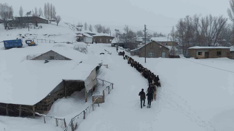 Muş’ta etkili olan yoğun kar yağışı ve tipi nedeniyle 1 metreyi aşan karda mahsur kalan keçi sürüsü, besicilerin büyük mücadelesiyle 6 kilometrelik zorlu parkurdan geçirilerek köye getirildi.