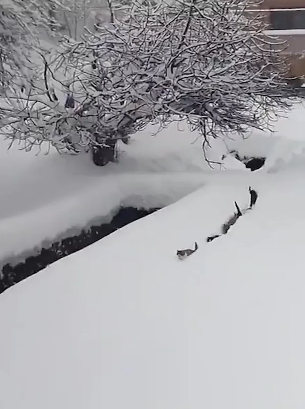 Kastamonu’nun Çatalzeytin ilçesi Yukarısökü köyü Tarakçılar Mahallesi’nde yaşayan köy imamı Rıfat Şahin, kar kalınlığının 1 metreye yaklaştığı köyde cep telefonu kamerasıyla görüntü çekmek isterken karda yürüyen kedilere seslendi. Kedilerin seslenen imamın yanına gelmek için karda sıralı şekilde yürümeye çalıştığı anlar renkli görüntüler oluşturdu. Boylarını aşan karda yürümeye çalışan kediler, imam tarafından cep telefonuyla görüntülendi.