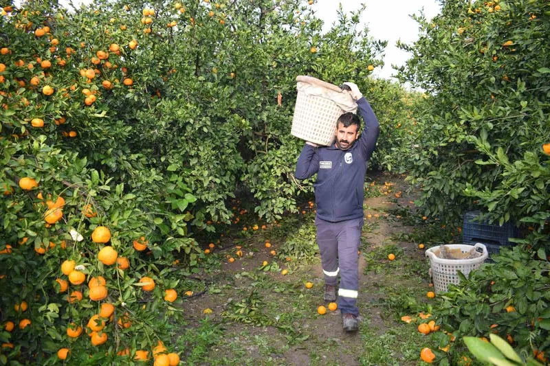 Türkiye’nin en verimli topraklarının yer aldığı Hatay’da bu yıl mandalina bereketi yaşanıyor. Adeta dalları kırılırcasına bereketli olan mandalina da fiyatta tarlada 2 TL’ye kadar geriledi. Satış fiyatının, toplama maliyetini karşılamaması üzerine yerel üreticiye destek olmak için Hatay Büyükşehir Belediyesi (HBB) harekete geçti. HBB, kırsal üretimin güçlendirilmesi ve toplumsal dayanışmanın artırılması hedefiyle önemli bir sosyal destek projesini hayata geçirdi. HBB Tarımsal Hizmetler Dairesi Başkanlığı koordinesinde hem yerel üreticiyi desteklemek hem de ihtiyaç sahiplerine ulaştırmak amacıyla Dörtyol, Erzin, Arsuz ve Samandağ ilçelerinden toplam 320 ton mandalina alımı gerçekleştirilerek vatandaşlara dağıtıldı.