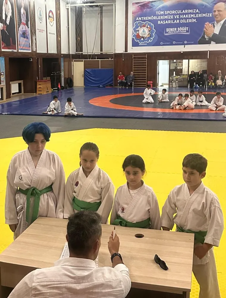Kyu sınavı heyecanlı bir atmosferde yapılırken, bir üst kuşağa terfi eden sporcular büyük
