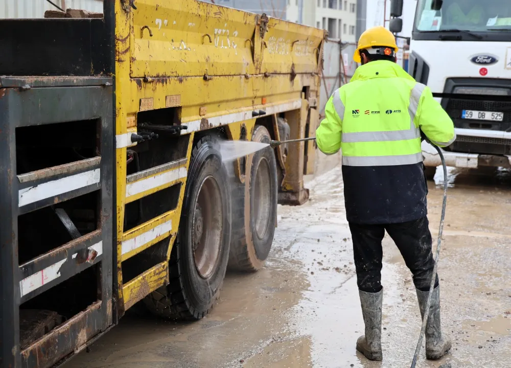 Özellikle hafriyat taşıyan kamyonların, şantiye sahasından ana yollara çıkarken tekerlek ve kasalarında biriken çamur ile tozun kent trafiğine ve çevreye zarar vermemesi için geliştirilen sistem sayesinde araçlar, saha çıkışında önce yıkama ünitesinden geçiriliyor ve detaylı şekilde kontrol edilerek temizleniyor. Ardından süpürge araçlarıyla güzergâh boyunca temizlik çalışmaları yapılıyor. Böylece yol yüzeyinde çamur birikmesi, kayganlaşma ve toz oluşumunun önüne geçilerek hem trafik güvenliği hem de çevre korunmuş oluyor.