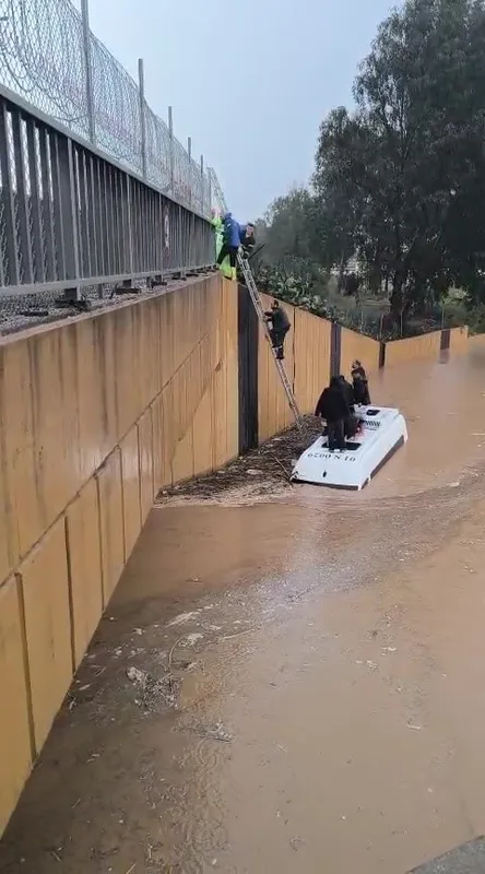Sağanak yağmura servis aracında yakalananlar merdivenle kurtarıldı