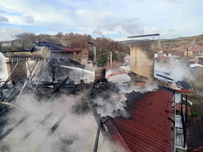 Kütahya’nın Şaphane ilçesinde çıkan yangında iki katlı bir evin çatısı hasar gördü.