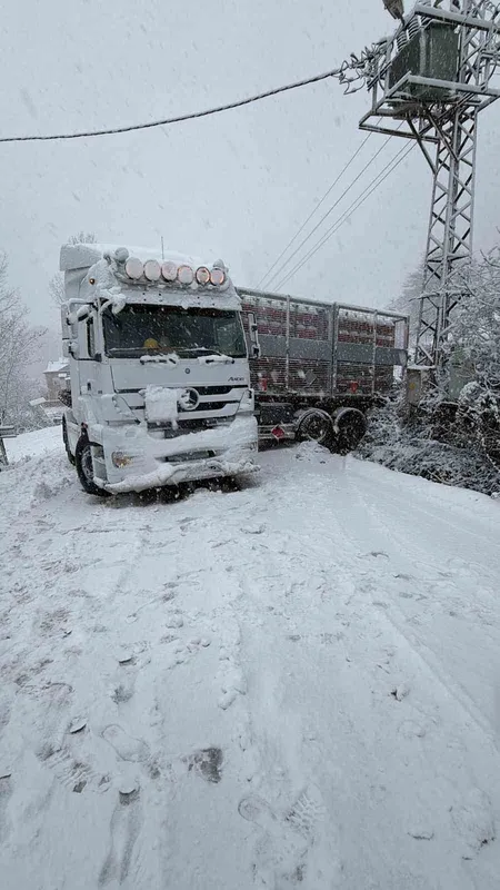 Türkeli’de doğalgaz tırı karda kaydı, yol ulaşıma kapandı
