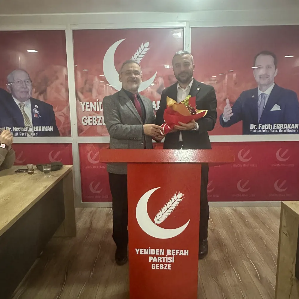 Yeniden Refah Partisi Gebze İlçe Başkanlığı’nda bayrak değişimi heyecanı yaşandı. Erbakan Vakfı’nın kuruluşundan bugüne davanın en ön safında yer alan, "amasız, fakatsız" çalışmalarıyla tanınan Engin Kılıç, ilçe başkanlığı görevini teşkilatın içerisinden yetişen yol arkadaşı Halil Bilikci’ye çiçeklerle devretti.