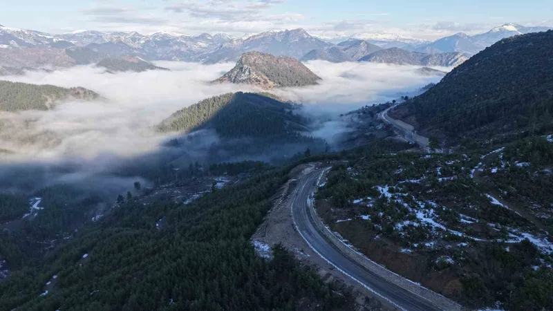Adana’nın Feke ilçesinde, kızılçam ormanları ve karlı dağların arasında sabah saatlerinde oluşan sis, muhteşem bir manzara sundu.