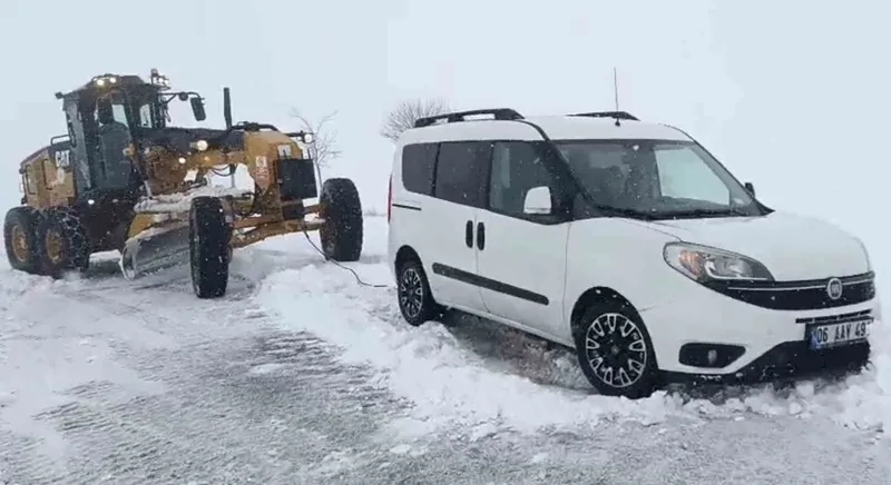 Aksaray’da yoğun kar yağışı nedeniyle yolda mahsur kalan araçlar kurtarılıyor