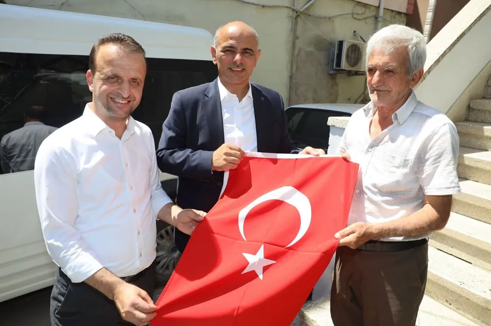 Bayrak dağıtımına AK Parti Körfez İlçe Başkanı Nurettin Okudan’ın yanı sıra Körfez Belediye Başkanı