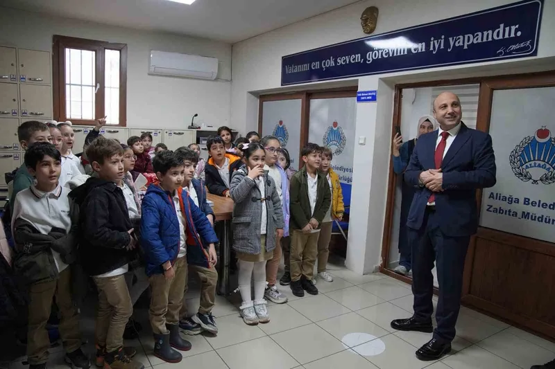 Aliağa Belediyesi Zabıta Müdürlüğü, Petro-Kimya İlkokulu 2-E sınıfı öğrencilerini misafir etti. Hayat Bilgisi dersi kapsamında "meslekler" konusunu yerinde öğrenmek amacıyla gerçekleştirilen ziyarette öğrenciler, zabıta mesleğini yakından tanıma fırsatı buldu.