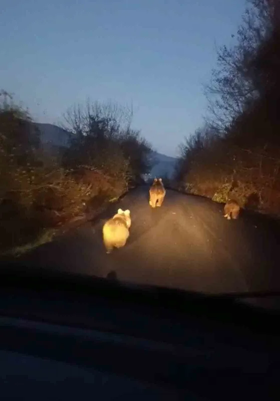 İlçeye bağlı Bağbaşı köyünde aracıyla seyreden bir vatandaş, anne ayı ile iki yavrusunun yolda ilerlediğini fark etti. Aracı görünce koşmaya başlayan ayılar sürücünün cep telefonu kamerasıyla anbean görüntülendi. Ayı ailesi bir süre sonra gözden kayboldu.