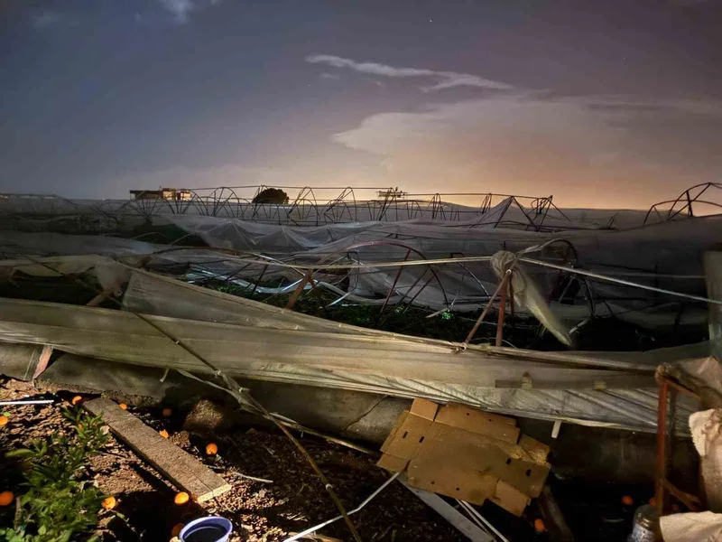 Antalya’nın Kumluca ilçesinde meydana gelen hortum, seralar ve enerji nakil hatlarında hasara yol açtı.