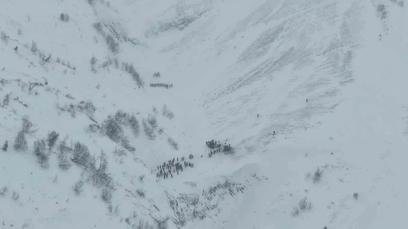 Zorlu arazi şartlarına rağmen sürdürülen arama kurtarma çalışmaları drone ile havadan görüntülenirken, görüntülerde ekiplerin karla kaplı geniş alanda titizlikle arama yaptığı görüldü.