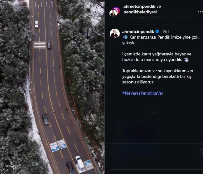 "Kar manzarası Pendik’imize yine çok yakıştı. İlçemizde karın yağmasıyla birlikte beyaz ve huzur dolu bir sabaha uyandık.