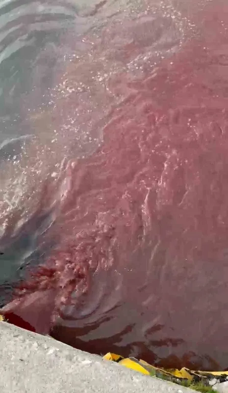 Bandırma’da deniz yüzeyi kırmızıya döndü