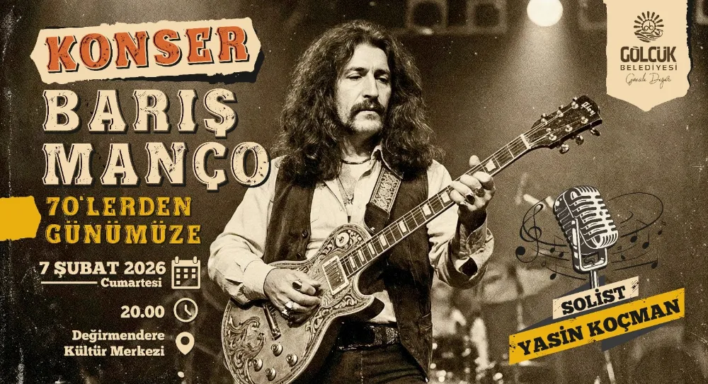 Gölcük Belediyesi, Türk müziğinin efsane ismi Barış Manço'yu vefatının 27. yıldönümünde anmak amacıyla özel bir etkinlik düzenleyecek. 7 Şubat 2025 Cumartesi günü, saat 20.00'da Değirmendere Kültür Merkezi’nde " Barış Manço 70’lerden Günümüze " konseri ile muhteşem sanatçının şarkıları, müzikseverlerle buluşacak. Konserde, Barış Manço'nun en sevilen ve hafızalarda iz bırakan şarkıları, solist Yasin Koçman tarafından seslendirilecek.