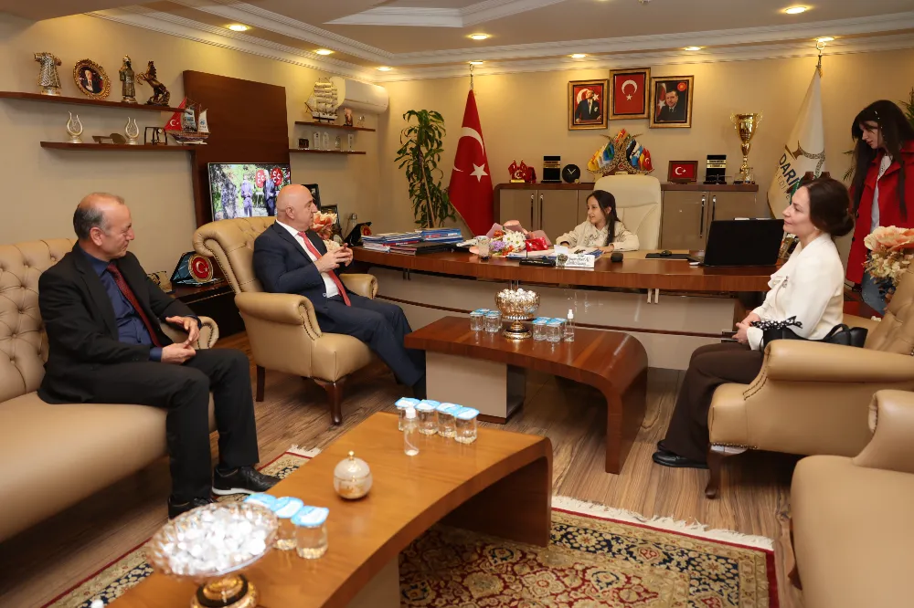 Darıca Belediye Başkanı Muzaffer Bıyık, 23 Nisan Ulusal Egemenlik ve Çocuk Bayramı dolayısıyla geleceğin liderleri olan çocukları makamında ağırladı. Çocukları kapıda karşılayan Başkan Muzaffer Bıyık, makamını Halide Edip İlkokulu üçüncü sınıf öğrencisi İpek Karayağız’a bıraktı. Başkan Muzaffer Bıyık’a çiçek takdim eden minik İpek, daha sonra başkanlık koltuğuna oturarak başkan yardımcıları ve birim müdürlerine çeşitli talimatlar verdiler.