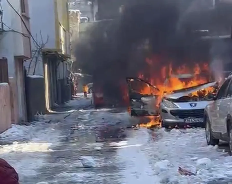 Batman’da sabah saatlerinde işe gitmek isteyen bir vatandaşın otomobili, soğuk hava ve don nedeniyle çalışmayınca alev aldı. Olayda panik yaşanırken, araç kullanılamaz hale geldi.