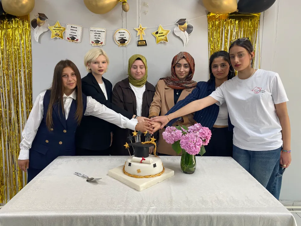 Beyaz Kalpler Eğitim ve Gelişim Merkezi’nde düzenlenen mezuniyet törenine mezun öğrenciler, aileleri ve merkez personeli katıldı. Törende öğrenciler, mezuniyet sertifikalarını Sosyal Hizmetler Şube Müdürü İrfan Türkmen’in elinden aldı. Törene renk katan bir diğer detay ise pastacılık bölümü öğrencilerinin hazırladığı ikramlar ve müzik atölyesi öğrencilerinin sunduğu müzik dinletisi oldu. Mezuniyet töreni, hatıra fotoğrafı çekimi ile sona erdi.