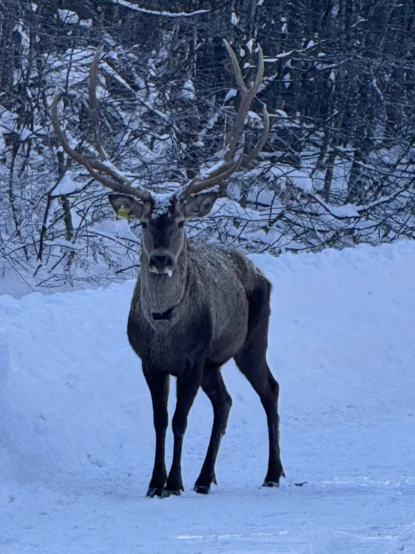 Beyaza bürünen doğada kızıl geyik sürprizi