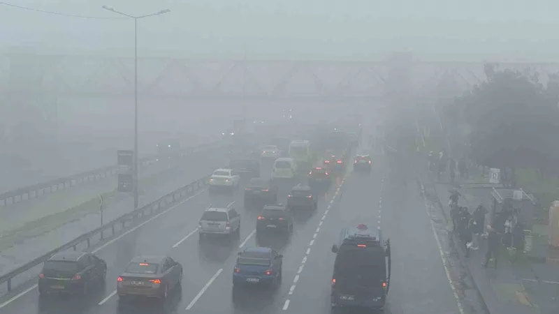 Büyükçekmece’de aniden bastıran sis nedeniyle görüş mesafesi düştü