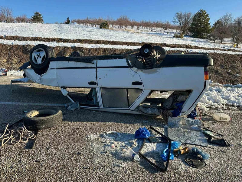 Konya’nın Bozkır ilçesinde buzlanma nedeniyle takla atan otomobilde sürücü kazayı yara almadan atlattı.