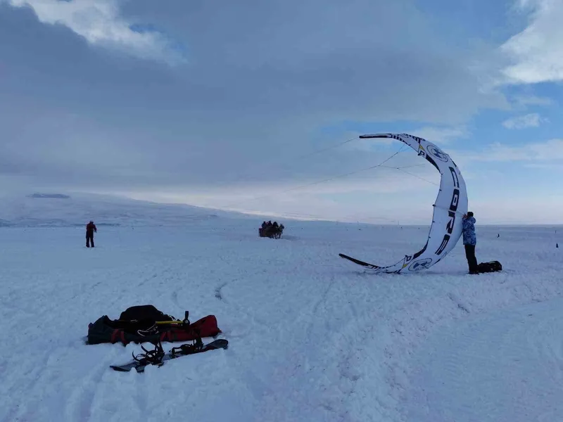 Ardahan’ın doğal güzellikleriyle ünlü Çıldır Gölü, bu kez adrenalin dolu bir ana sahne oldu. Kış aylarında yüzeyi tamamen donan göl üzerinde bir sporcu, paraşütle uçarak, unutulmaz anlar yaşadı.