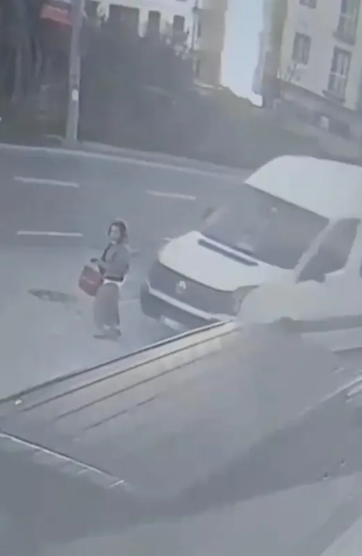 Trabzon’un Yomra ilçesinde oturduğu sitenin önünde dolmuş bekleyen kadın kendisini fark etmeyen bir minibüsün altında kalarak sürüklenirken, o anlar sitenin güvenlik kamerasına yansıdı.