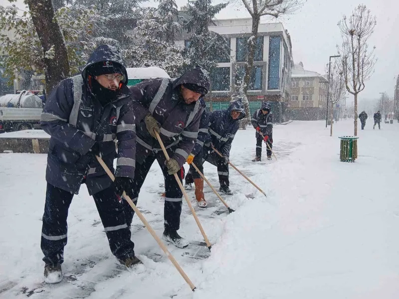DÜZCE(İHA) –Düzce’de etkisini artıran yoğun kar yağışı nedeniyle Düzce Belediyesi ekipleri sahadaki çalışmalarına aralıksız devam ediyor.