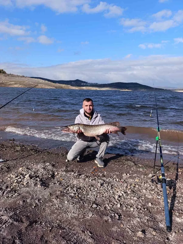 Balıkesir’in Sındırgı ilçesinde bulunan Çaygören Barajı’nda balık avına çıkan profesyonel olta balıkçısı Hasan Gökçe ve arkadaşı, unutulmaz anlar yaşadı. Gökçe’nin oltasına tam 8 kilo 750 gram ağırlığında dev bir turna balığı takılırken, o anlara doğadan sürpriz bir misafir de eşlik etti.