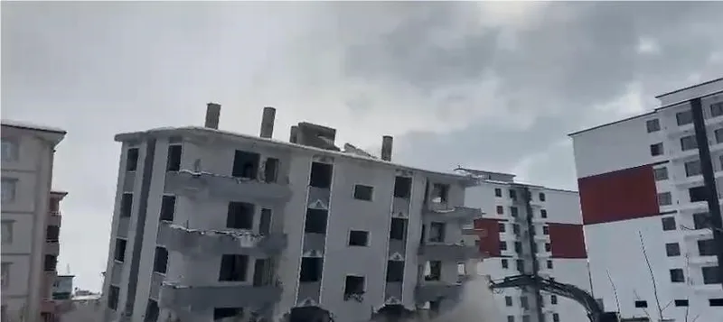 Kahramanmaraş merkezli depremlerde Elazığ’da ağır hasar gören binaların yıkımları sürüyor. Bu çerçevede binanın yıkım anı kameralara yansıdı.
