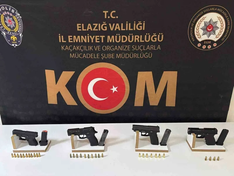 Edinilen bilgiye göre, Elazığ Cumhuriyet Başsavcılığı koordinesinde İl Emniyet Müdürlüğü Kaçakçılık ve Organize Suçlarla Mücadele, Çocuk ve Asayiş Şube Müdürlükleri tarafından genel güvenlik ve genel asayişin sağlanması, suça konu unsurların tespiti ve şüpheli şahısların yakalanmasına yönelik çalışmalar sürüyor. Bu çerçevede 2 gün önce İcadiye Mahallesi Sarısaltuk Caddesi üzerinde faaliyet gösteren 2 ayrı restaurantta meydana gelen ‘Yağma, Mala Zarar Verme, 6136 Sayılı Kanuna Muhalefet ve Genel Güvenliğin Kasten Tehlikeye Sokulması’ olayına karıştığı tespit edilen 6 şüpheli olayda kullanıldığı değerlendirilen 4 adet ruhsatsız tabanca ve tabancalara ait 32 adet fişek ile birlikte yakalandı.