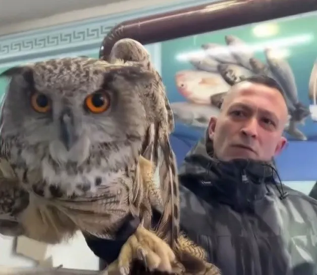 Erzincan’da soğuk hava nedeniyle bitkin düşen bir baykuş, duyarlı vatandaşlar tarafından yakalanarak koruma altına alındı.
