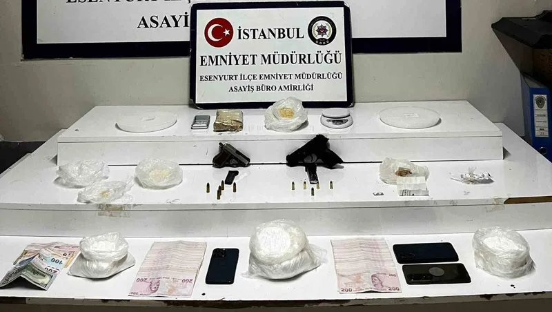 İstanbul Emniyet Müdürlüğü ekipleri Esenyurt Piri Reis Mahallesi’nde bulunan bir evde uyuşturucu madde ticareti yapıldığını belirledi. Harekete geçen ekipler 12 Aralık 2025 tarihi saat 17.00 sıralarında operasyon düzenledi. İkamet adresi ve çevresinde gerekli güvenlik önlemleri alınarak düzenlenen operasyon sonucunda, uyuşturucu madde ticareti yaptığı belirlenen M.K.(41) ve H.K.(39) şahıslar yakalanarak gözaltına alındı. Adreste ve şahıslara ait araçta yapılan aramalarda ise; 3 kilo 310 gr. metamfetamin, 1 kilo 841 gr. kokain, 474 gr. eroin, 1 adet kağıda sarılı 1,22 gr uyuşturucu madde, 2 adet ruhsatsız tabanca, 2 adet hassas terazi, çok sayıda şeffaf klipsli poşet, 3 adet cep telefonu, 42 bin 585 TL , 300 dolar ele geçirdi. Emniyette işlemleri tamamlanan şüpheli şahıslar, "Uyuşturucu veya Uyarıcı Madde İmal veya Ticareti" suçundan 13. Aralık 2025 tarihinde adli makamlara sevk edildi. H.K. isimli şahıs hakkında adli kontrol hükümleri uygulanırken, M.K. isimli şahıs tutuklanarak cezaevine gönderildi.